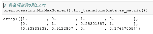 还有一种标准化方法MinMaxScaler()能够将数值缩放到0到1之间,更好的约束的数组特征: