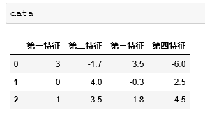 每一行特征数据的数值都相差比较大,比如第一行最大值为3.5,最小值为-6,相差为9.5;第二行最大值为4,最小值为-0.3,相差为4.3。