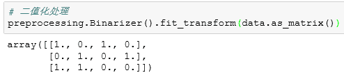 前面介绍的数据预处理方法都是对数据进行缩放,除了对数据进行缩放之外,我们还可以对数据进行二值化处理,将不同的数据全部处理为0或1这两个数值。