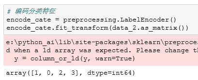 在sklearn中,对应的处理方法为preprocessing.LabelEncoder(),下面我们看一个实际的演示: