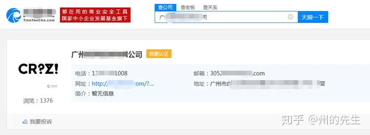 在得到了天猫店铺对应的企业名称之后,我们就可以通过目前市面上的企业信息查询工具进行查询了,比如使用某某查等网站: