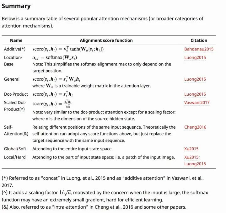 在 Bahdanau 的论文中, the alignment score 用一个 feed-forward network with a single hidden layer 来参数化,这一部分联合模型一起进行训练。