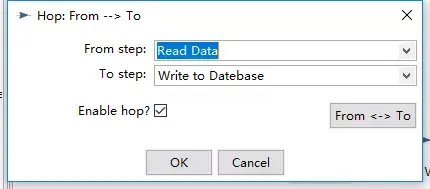 两个steps建立好了,鼠标按住read data 同时按信shift键拖动鼠标到write to database,会有一条线出现,这条线就是hops, 其实就是流程方向,双击的话会看到对话框,从read data 到write to database。