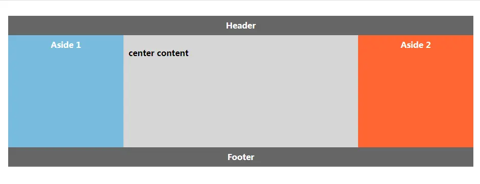 回归到Flex Box,发现事情变得简单很多。我们针对圣杯结构进行布局(因为双飞翼布局需要额外添加一个元素),一个可行的解决方案如下: