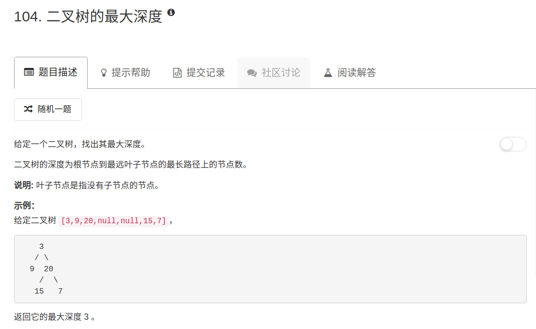 如果根节点为空,直接返回 0。如果根节点非空,递归得到其左右子树的深度,树的深度就为左右子树深度的最大值加 1。