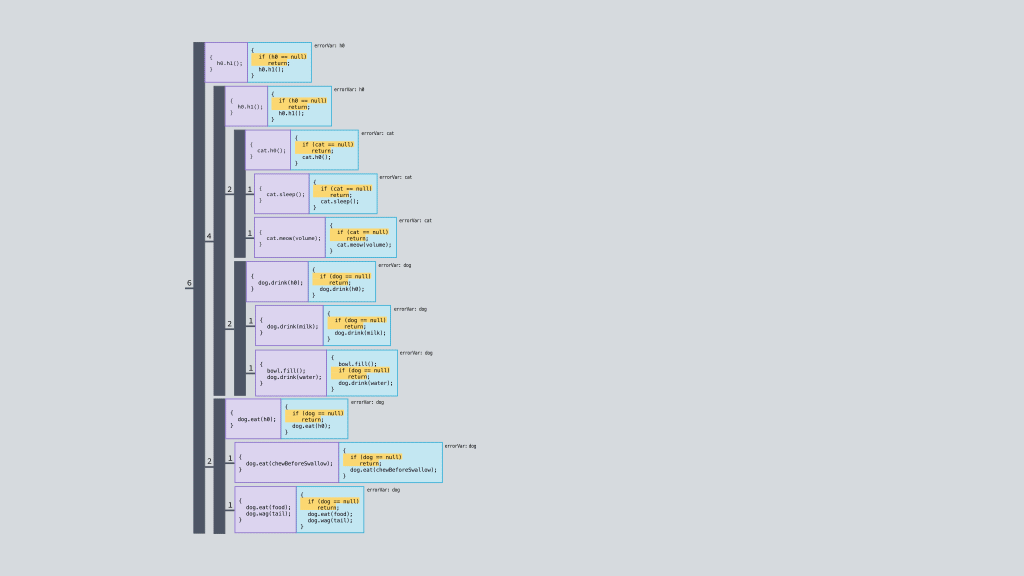 例子2: 假设现在是这种模式:h0.h1() → h0!=null && h0.h1()