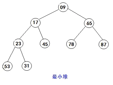 任一节点的关键码均小于等于它的左右孩子的关键码,位于堆顶节点的关键码最小。