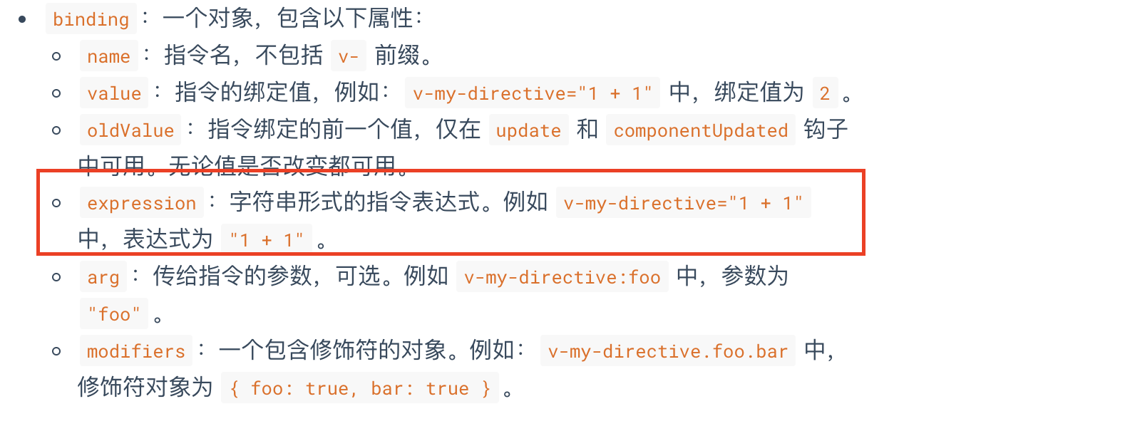 - binding 就是指令里一些杂七杂八的东西拉 比如v-domOff 就可以从这里获取