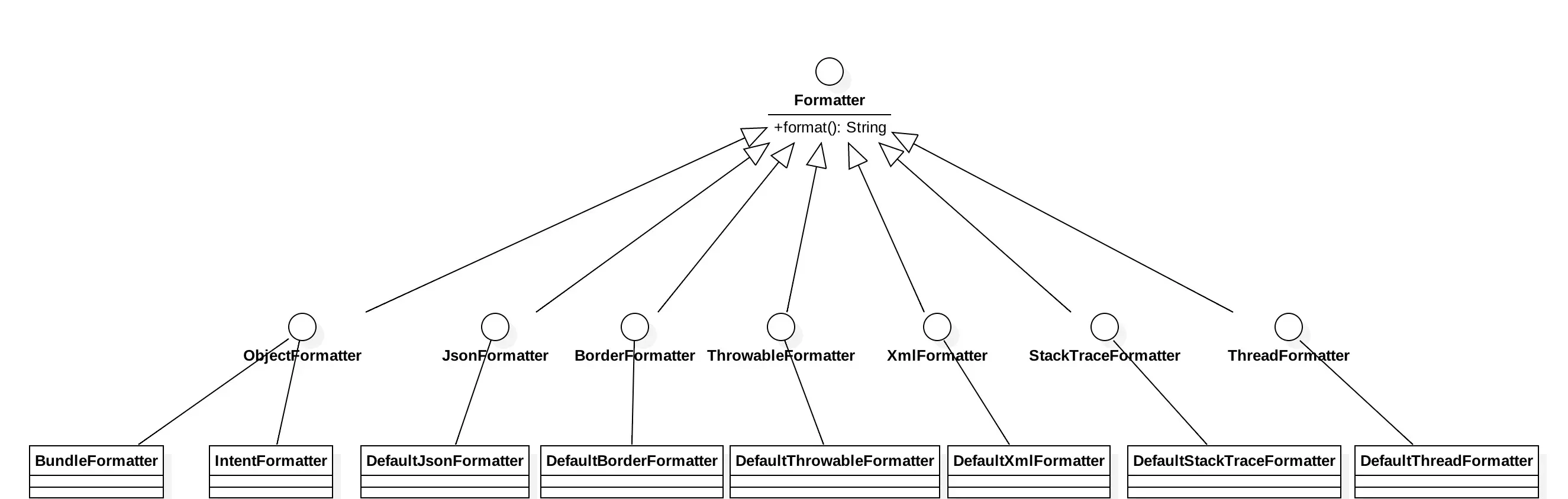 Formatter 主要是为一些常见的对象提供格式化的输出。XLog 中抽你了一个泛型接口 Formatter,其中的 format() 方法定义了输入一个数据/对象,对应将其格式化成一个 String 用于输出,中间的处理过程由各个子类自己完成。