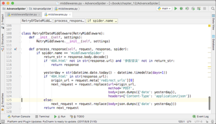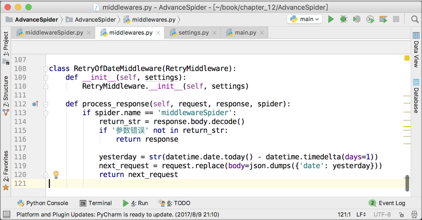 由于日期不是今天,就是昨天,所以针对这种情况,写一个重试中间件是最简单粗暴且有效的解决办法。中间件的代码如下图所示。