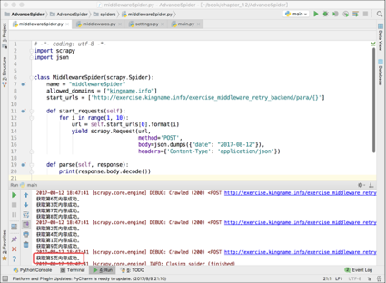 对于这种情况,在重试中间件里面判断返回的网址即可解决,如下图12-21所示。