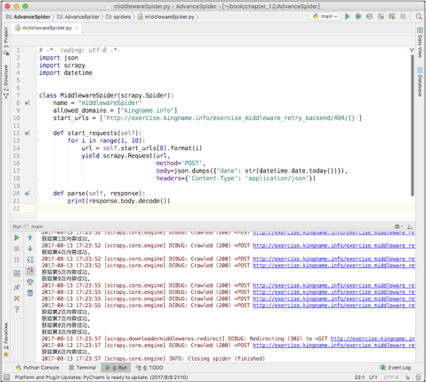 在爬虫的运行过程中,可能会因为网络问题或者是网站反爬虫机制生效等原因,导致一些请求失败。在某些情况下,少量的数据丢失是无关紧要的,例如在几亿次请求里面失败了十几次,损失微乎其微,没有必要重试。但还有一些情况,每一条请求都至关重要,容不得有一次失败。此时就需要使用中间件来进行重试。