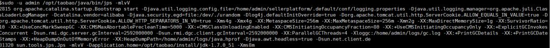 sudo -u admin /opt/taobao/java/bin/jps -mlvV