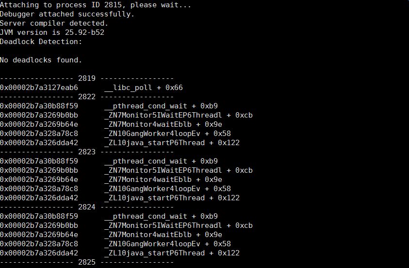 sudo -u admin /opt/taobao/install/ajdk-8_1_1_fp1-b52/bin/jstack -m 2815