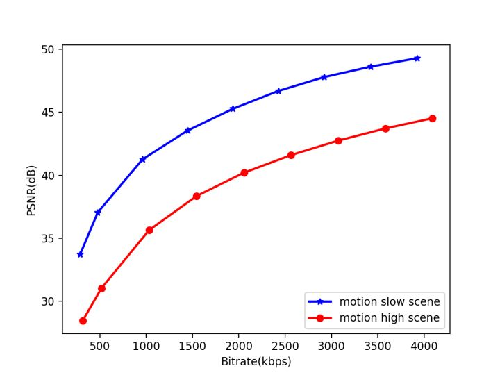 从上图可以看出,在相同质量下,场景运动缓慢的视频比场景运动剧烈的视频,所需码率少很多,这就是场景划分的意义所在。