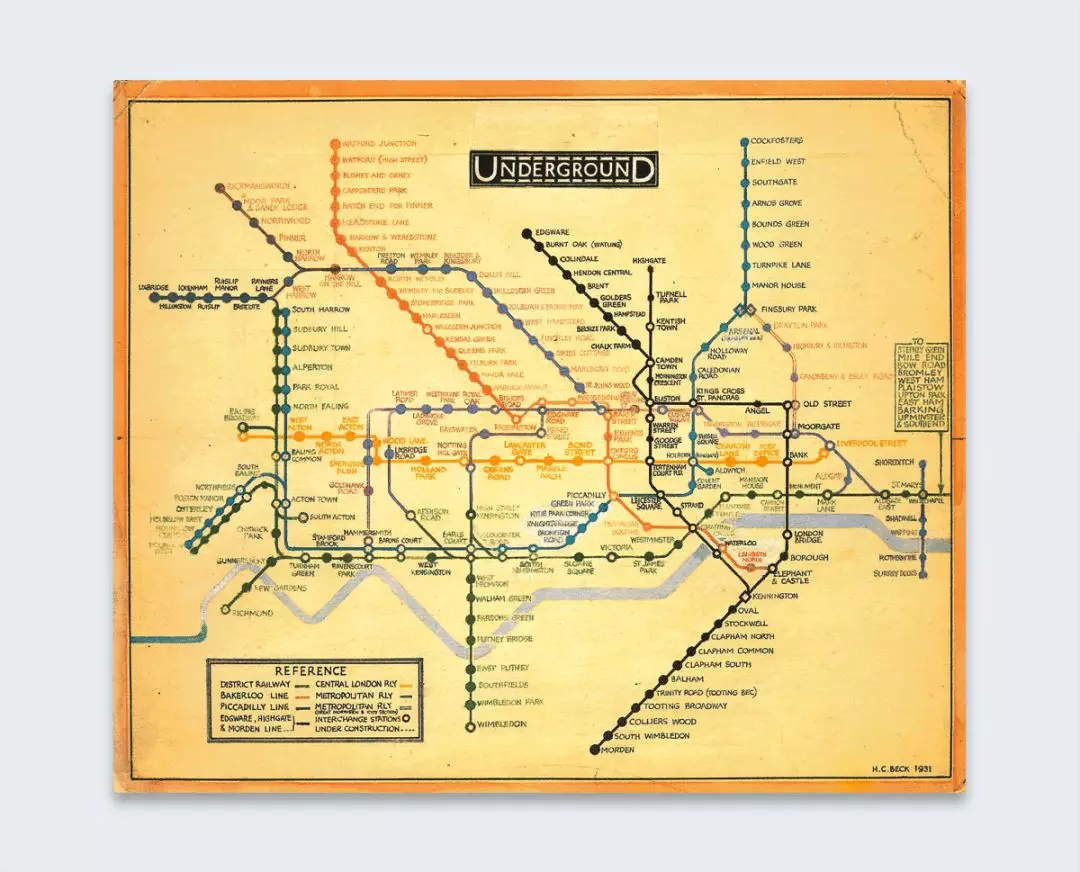 说到英格兰,信息图表历史上的一大步是在1933年,当时哈里贝克创建了伦敦地铁的第一张地图,只显示了描绘公共交通路线和车站的线路。这是一个重要的发展,因为它将视觉图表移动到日常生活中。
