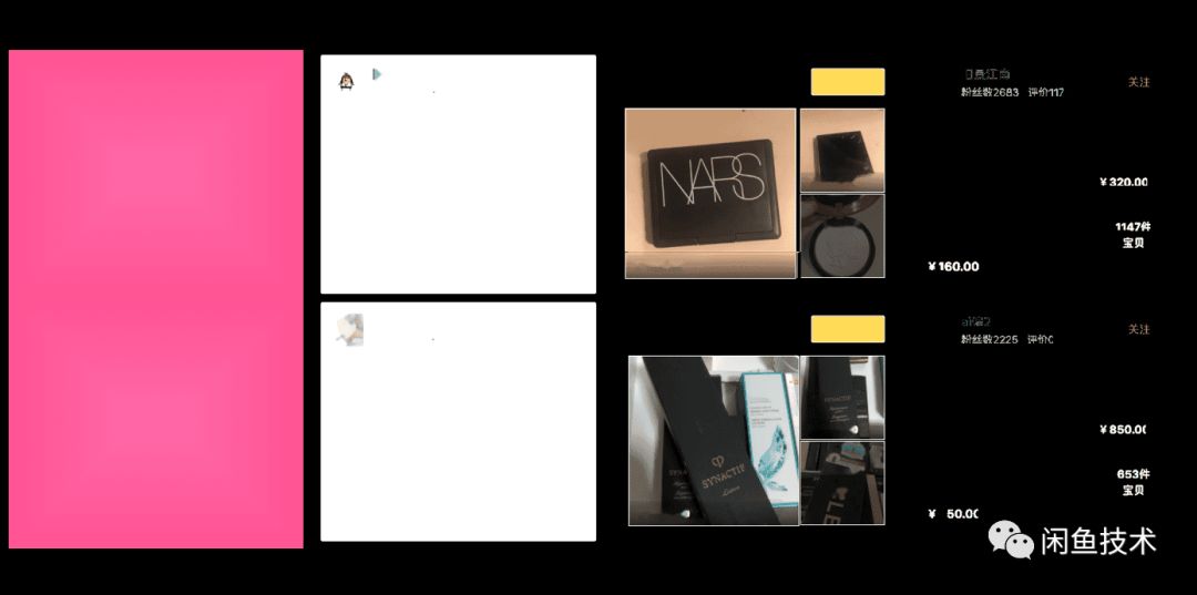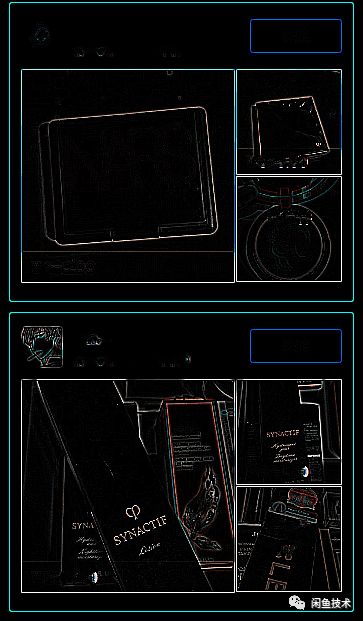 来看看例子,以下左图是闲鱼首页,右图是基于OCR给出的文字位置信息对文字区域进行标记(图中白色部分),可以看到,大致上位置是准确的 但比较粗糙 无法精确到每个文字本身 而且同一行的不同文字片段 OCR会当成一行去处理。