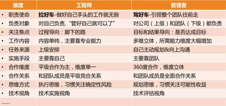 今天我们就来详细地探讨一下,从一名职业的工程师,到一名职业的管理者,在角色上都有哪些东西发生了转变。