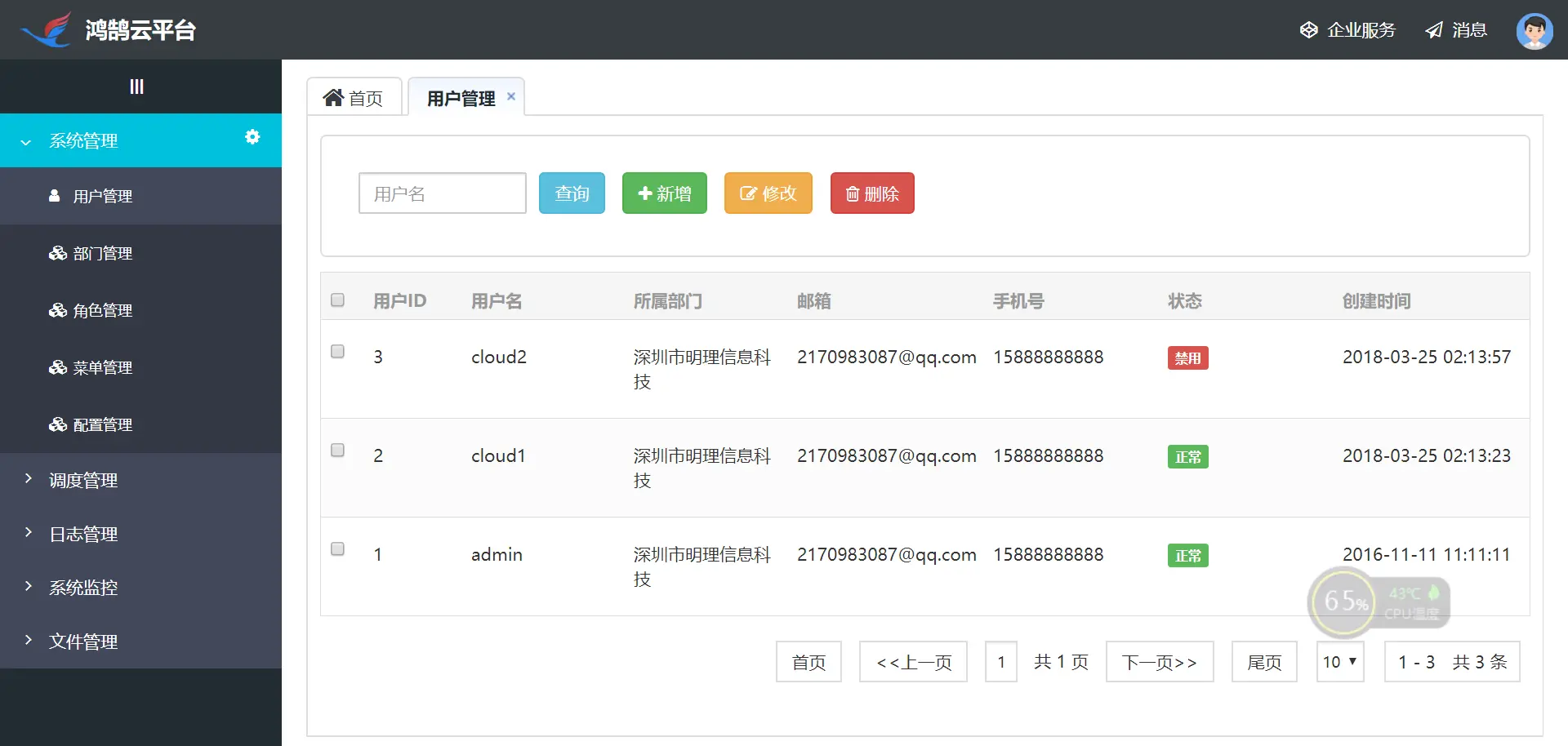 用户管理:用户是系统操作者,该功能主要完成系统用户配置。