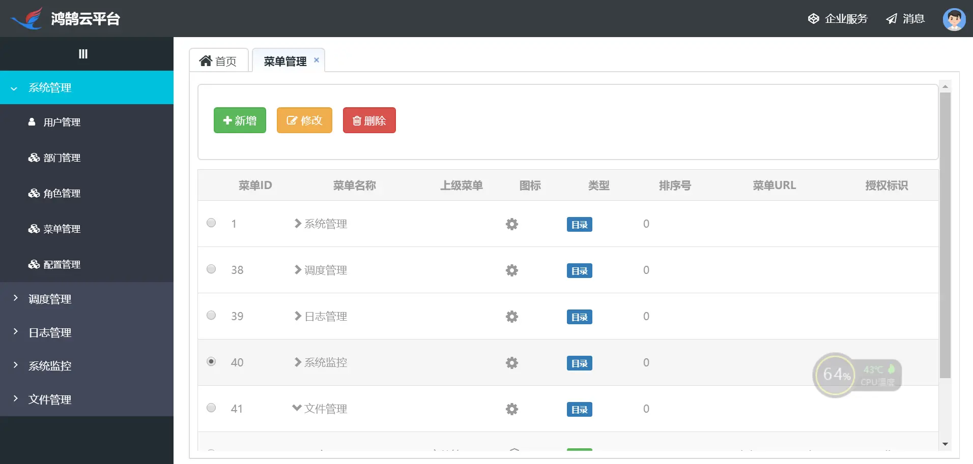 菜单管理:配置系统菜单,操作权限,按钮权限标识等。