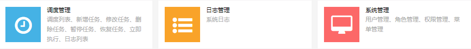 调度列表、新增任务、修改任务、删除任务、暂停任务、恢复任务、立即执行、日志列表