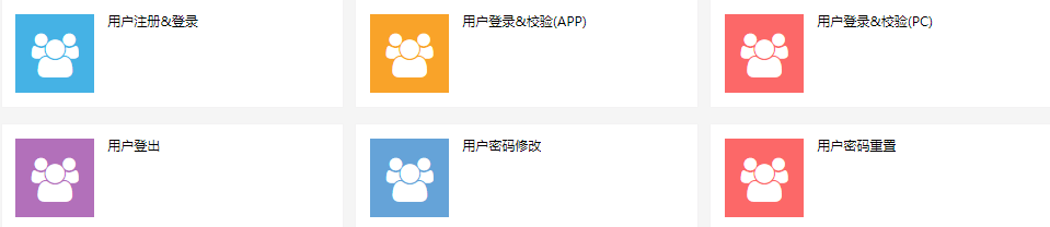用户注册&登录、用户登录&校验(APP)、用户登录&校验(PC)、用户登出、用户密码修改、用户密码重置