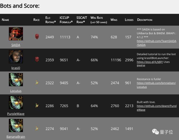 这还不是赛达的全部成就。在另一个星际赛事——星际AI锦标赛(SSCAIT)上,它的ELO等级分也排在第一名。