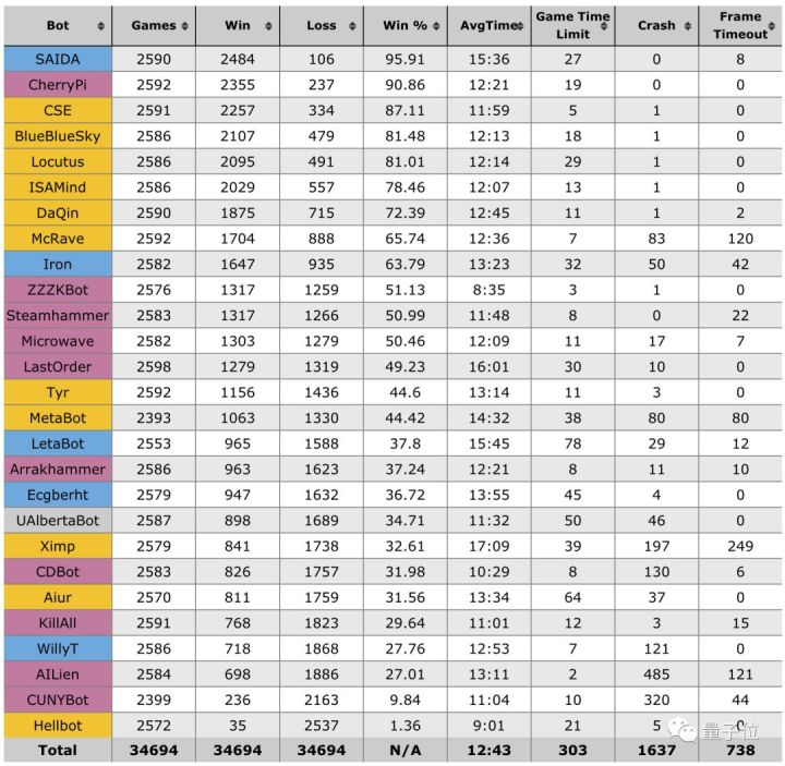 可能正是由于Locutus的成功,今年3-8名的战队,全都是使用神族的AI。全部战队中,有11支使用了神族,虫族的热度有所下降。
