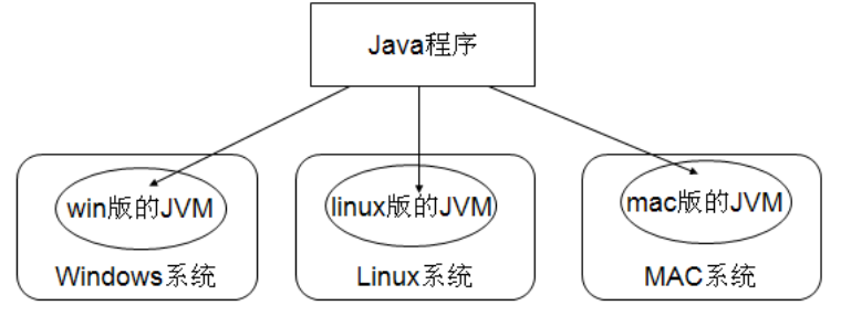 因为有了jvm,所以同一个java程序可以在三个不同操作系统下执行。所以就实现了java程序的跨平台性。也称,java具有良好的可移植性