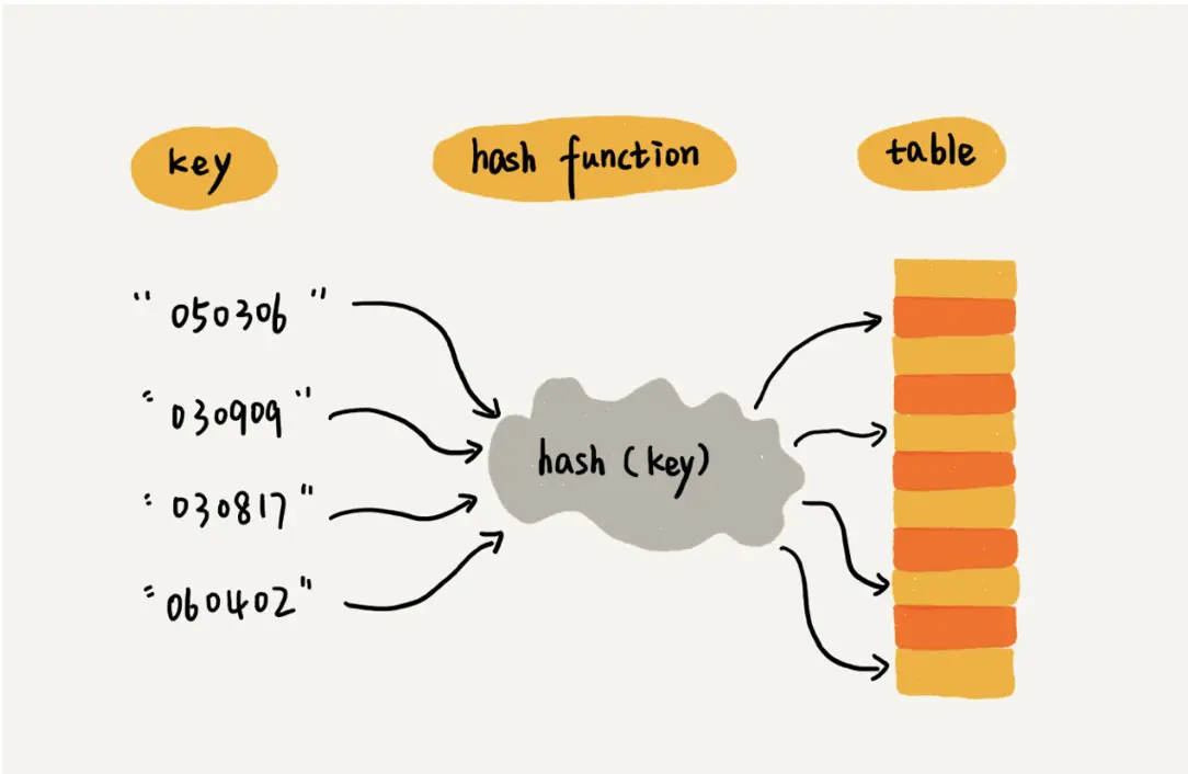 根据前边学到的hashTable思想,相同的key经过哈希函数计算得到的散列值是相等的。因此可以利用散列表。