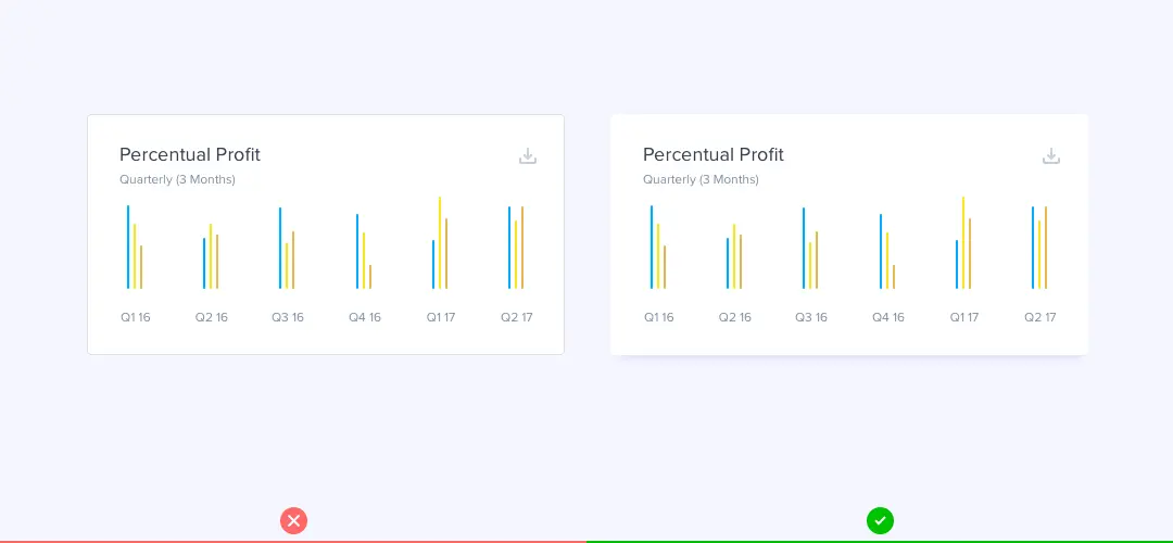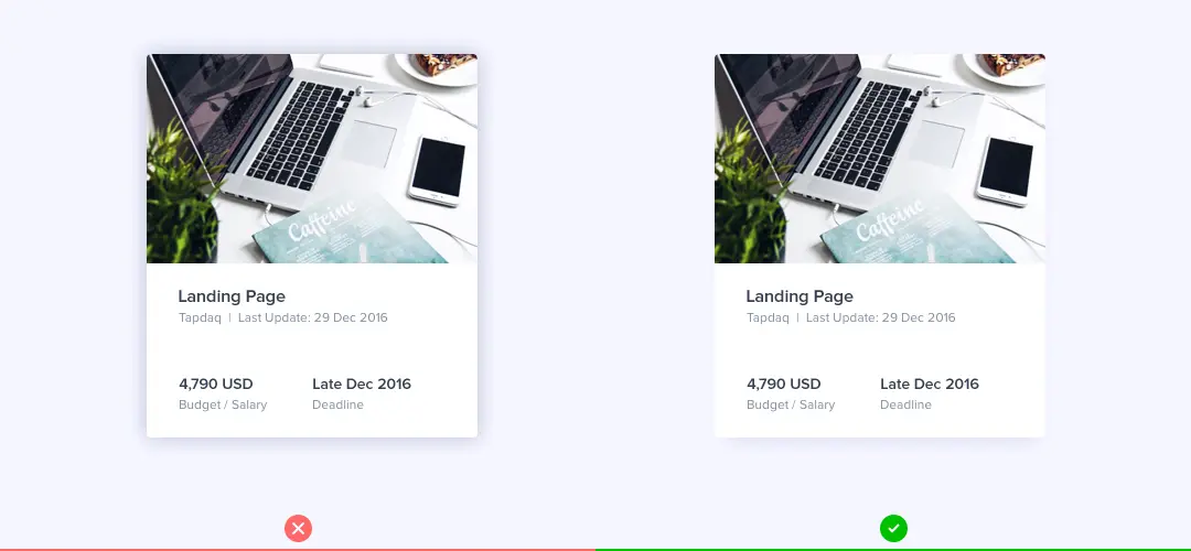 当我们做卡片需要做一个投影效果的时候,不使用较大的模糊来使框阴影更明显,而是让淡淡的投影垂直偏移