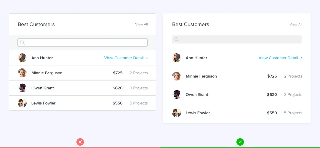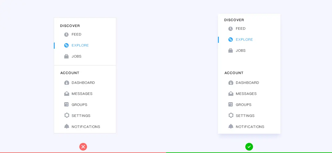 当你想做元素分区的时候,虽然线框是区分两个区域的好方法,但他不是唯一的方法,使用太多的线宽会让设计看起来显得繁琐、复杂。