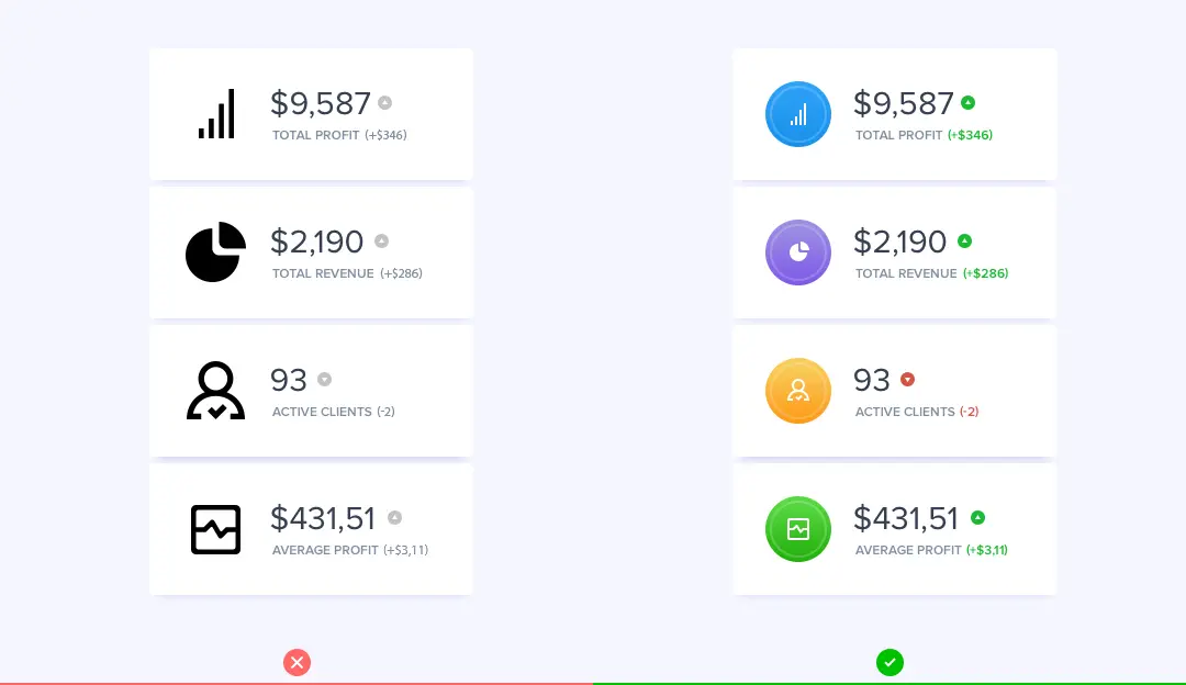 如果元素不同,那么干脆让他截然不同,让他的对比关系变得更强烈,能让用户先获取到更加重要的信息。