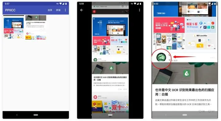 PPIICC 在界面设计上遵循 Material Design 理念,简洁干练且不失美感, 但其图片拼接功能十分强大。当你选择多张内容有部分重合的截图及排序好后,点击「拼接」PPIICC 便能根据拼接设置中的模式自动拼接。