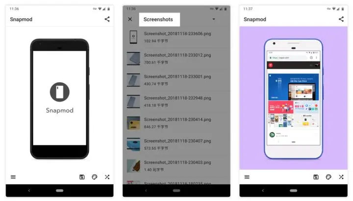 相对于同类带壳截图应用,Snapmod 收录了许多厂商的机型,包括谷歌、小米、vivo、OPPO、魅族、三星、索尼、一加、锤子、苹果、华为等共计 17 家手机厂商,并且基本上涵盖了目前市场上的热门机型,就连发布不久的新机小米 MIX3、Pixel 3 XL 也在支持列表之中,开发者称还将会继续不断更新。