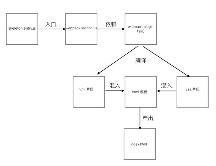 然后我们需要的是能把skeleton.entry.js编译成服务端渲染可用的bundle文件,所以我们需要有个编译骨架屏的webpack.ssr.conf.js文件: