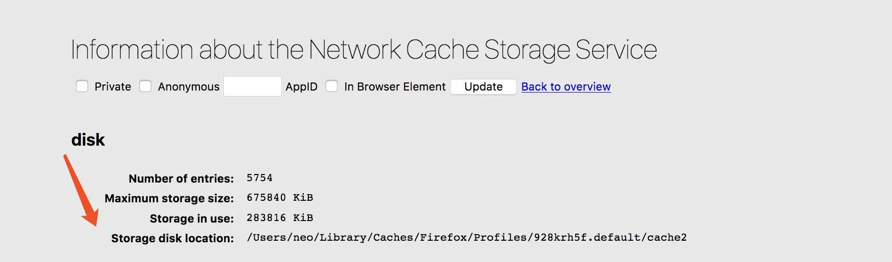 如图上所示,在此我们可以查看到一些关于缓存在磁盘内的信息,包括实际本地缓存所在的位置等。