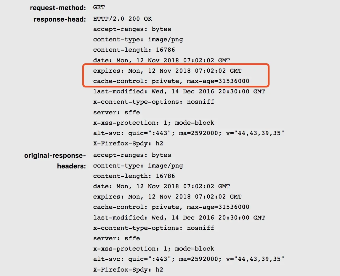 最后可以看到,我们的本地缓存文件内,会包含response-head的信息,之后的缓存策略和流程都需要依赖此处的信息。