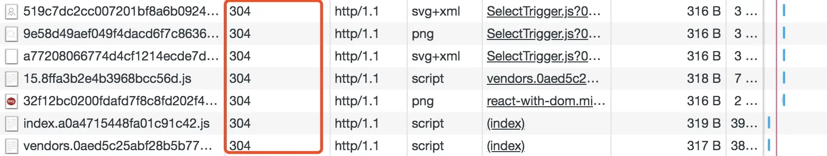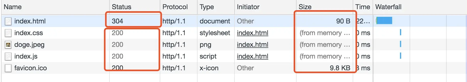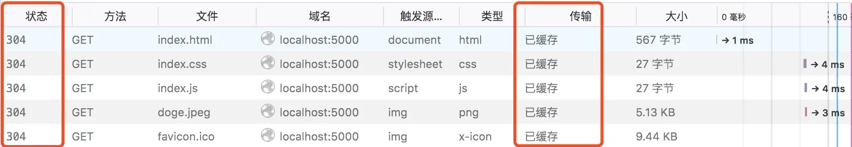 - favicon.ico:没有命中缓存,服务端获取资源