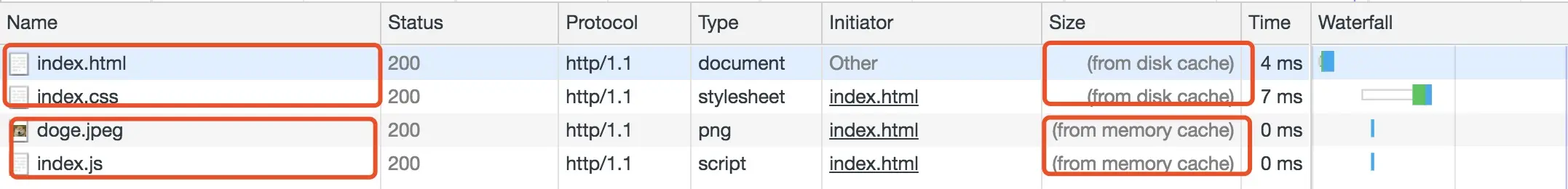 至于from memory cache 和 from disk cache相关的之后讲解。