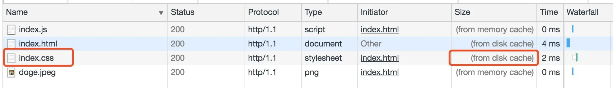 Chrome使用两个缓存: disk cache 和 memory cache