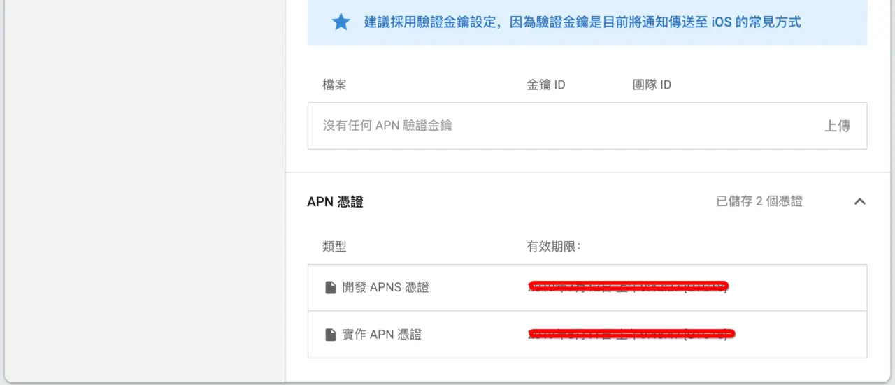 在"专案设置-设置-Cloud Messaging"中上传开发者凭证到fcm平台