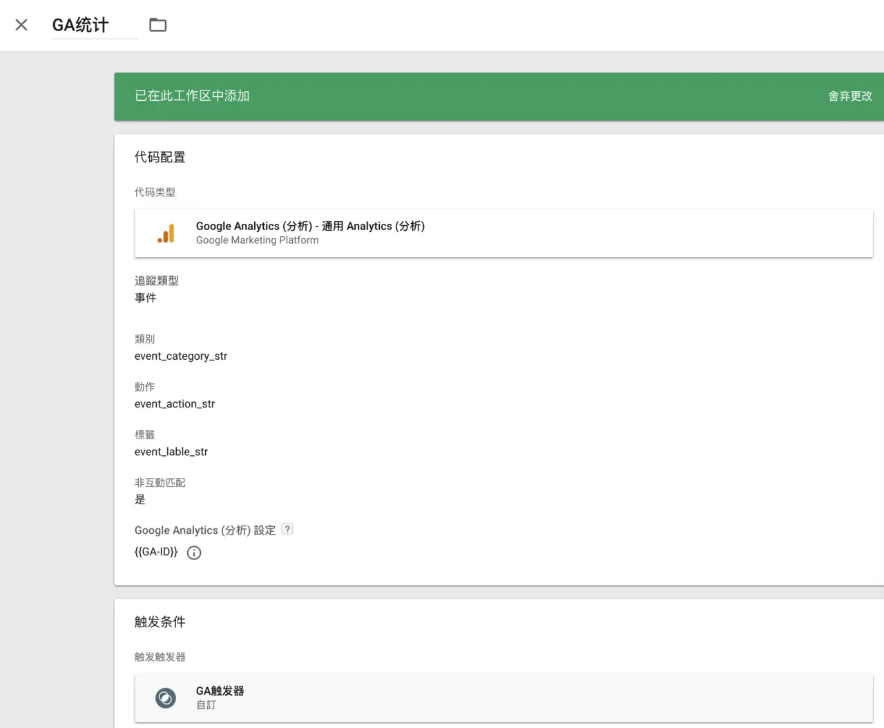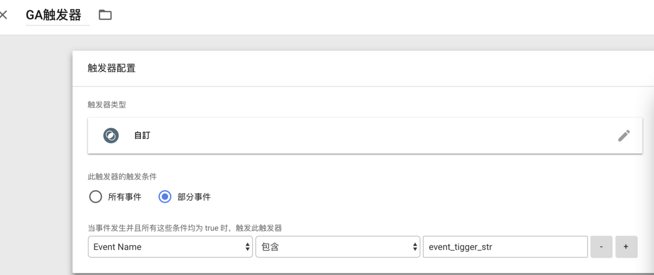 简述:我们先在 GTM container 网页上设定想追踪的 tag(标籤),每个 tag 会包含一个 trigger(触发条件),当 Firebase 发送事件后 GTM 会去比对这个事件是不是符合某个 tag 的触发条件,在这次的例子中就会将数据发送到 GA 报表上。触发条件比较灵活,可以自定义。包括维度的划分。这里就不再详细介绍。