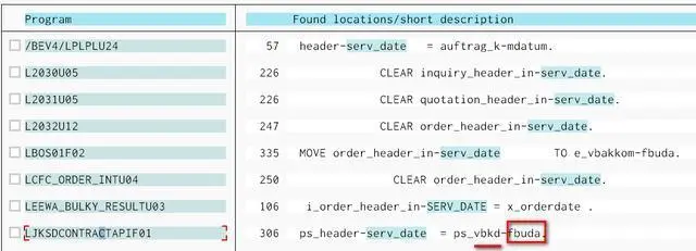 如果想知道一个Sales Order的SERV_DATE字段存储在哪张表,该怎么找呢?注意上图提示,SERV_DATE的类型是FBUDA. 记住这个FBUDA名称。