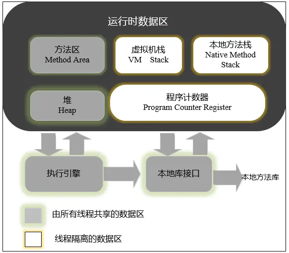 - 每个线程有独立的程序计数器(线程私有,为了切换线程时能恢复到挣钱的执行位置)