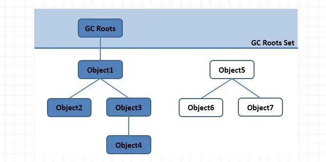 把"GC Roots"的对象作为起点,然后向下搜索,搜索所走过的路径称为引用链,当一个对象到GC Roots没有任何引用链相连时,即该对象不可达,也就说明此对象是不可用的。