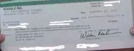 2006年6月,他贴出了一张谷歌广告给他寄来的90万元的支票,相当于他一天赚3万美元。