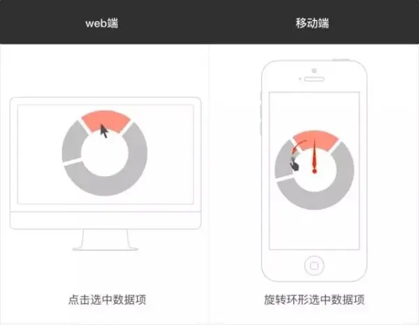 图表分类站在数据分析师的角度,一般会把图表按照其表达意义来分类,比如说适合分析趋势的图、适合分析占比的图等等;但从交互设计师的角度来看,我们还会按照交互操作方式和操作区域来分类,这可以帮助我们根据不同的类别来设计不同的交互手势。