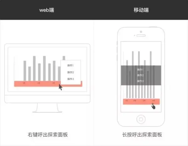 探索功能面板包括一些常用的操作,比如说排序、隐藏数据项等等,在web端是通过右键激活的;但在移动端并没有右键这个操作,这个时候可以把右键替换成长按,同样能够触发面板。