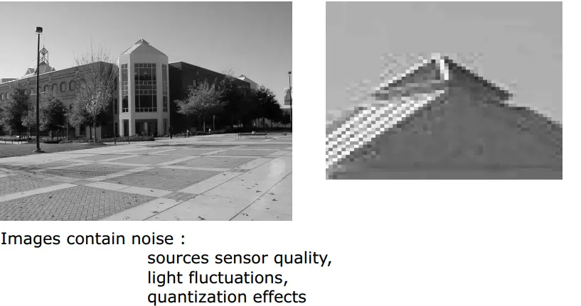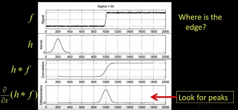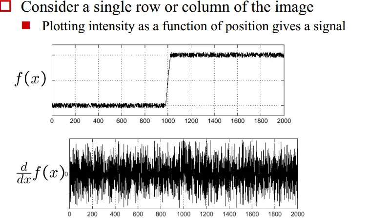 真实的图片数据是有噪声的,直接拿f(x)来做微分的话,得到的梯度 噪声是非常大的,无法找到边缘的位置。所以在拿到原图像之后先去噪,再求微分。